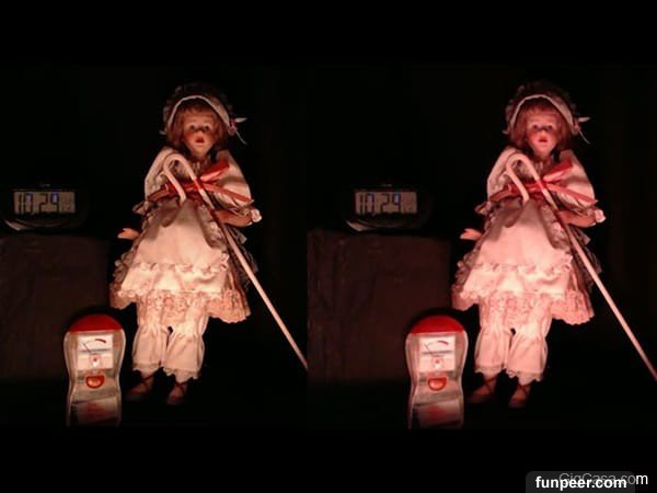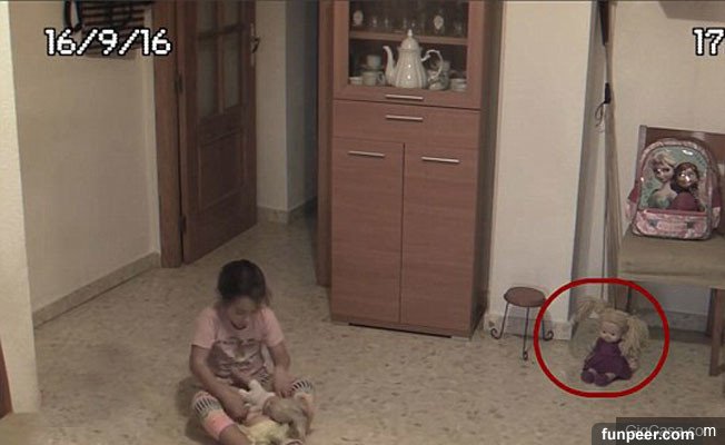 5.最後一個是被監視器拍到會動的娃娃,片中可以看到一個小女孩坐在地上玩,但旁邊的娃娃真的開始動了…