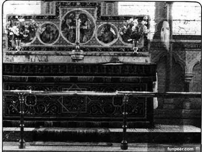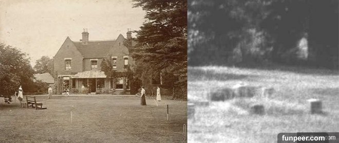 這張傳奇性的照片在1963年被Reverend K.F. Lord在一間南約克郡的教堂拍下。他說她拍下照片時並沒有看見人影,是洗出後才看到的。有人懷疑那是位16世紀的僧侶,戴着遮痲瘋病傷痕的面具,不過那個人影的身高約有9英尺 (274公分) 高。 9. 蒙特羅斯鬼魂。