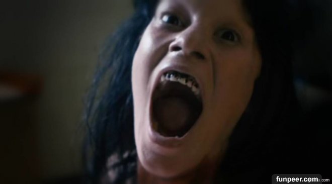 直到有位醫療人員決定上前綁住女人的手腕時,卻突然被她用極大的力道推飛出去,頓時其他幾名醫療人員也上前幫忙,好不容易將女人壓制在病床上。不過這時,女人卻竟然緩緩揚起嘴角,對着醫生們微笑了。隨着她笑容逐漸擴大,大家才看清楚她的嘴裏根本不是牙齒,而是一排排尖細的釘刺。