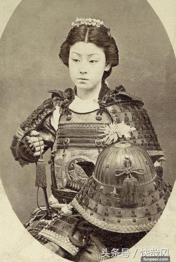 當時,照相剛引進日本,這是在攝影棚里的擺拍,這些姑娘肯定是武家(指武士家族,與「公家」相對)的女性,但與古代能上馬打仗的女武士不可混談。