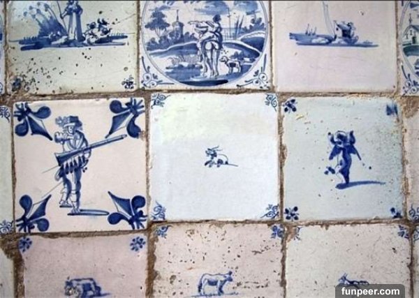 果然,這面牆後面居然還有另一面牆!裡面竟有多塊來自荷蘭台夫特的瓷磚,這種瓷磚的價值高達1000多英鎊(台幣約5萬元),而且每塊瓷磚上的圖案都不一樣。