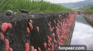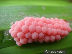 這是福壽螺產卵。 日前臉書粉絲頁阿鏘的動物日常竟分享有勇者吃福壽螺卵的故事! [福壽螺4倍速生產線] #勇者災後談(?昨天在噗浪貼分享這個影片,大家就在討論「不知道福壽螺卵吃起來是甚麼味道呢?」 這時,居然出現了真的吃過的勇者!Σ(;゚д゚)