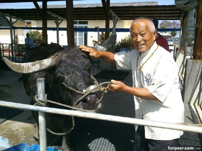 梁平說,再來要把牛牛送往屏東專門處理動物的化制場火化,骨灰交由化制場處理,他永遠不會忘記和牛牛的這一世情。牛牛高齡32歲,換算人類的年紀是117歲,堪稱「牛瑞」,她也是2010年「老牛之家」開園時首批入住的老牛,飼養員邱繼傳說,牛牛陪伴遊客度過6個年頭,許多粉絲都很愛護她。(牛牛與梁平合照)