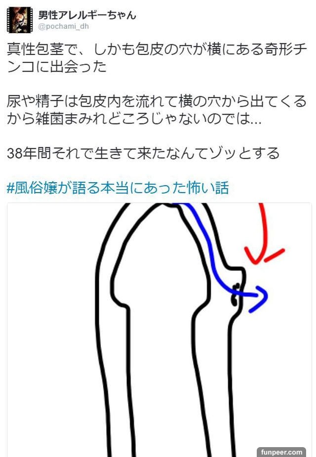 1. 她遇過一位嚴重「包莖」的客人,更奇怪的是包皮的開口不是在頂端,而是在旁邊!也就是說不管尿尿、射精,都從旁邊的開口流出,一想到38歲的他多年來累積的精子和尿垢就…