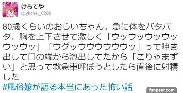 9. 80歲的阿杯做到一半突然抽蓄口吐白沫,正要幫他叫救護車時就射了…