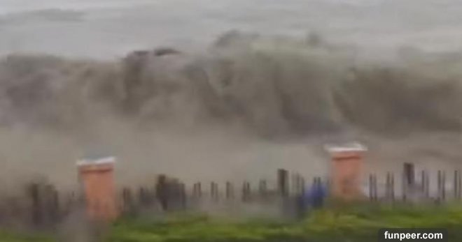 恐怖海浪襲擊!跑都來不及了,這些人還在拿手機拍攝,注意0.39秒海浪捲走人......OMG!!!