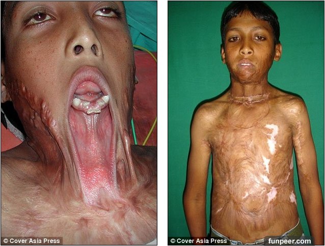 Shakya醫生說他第一次見到塔基時嚇到了,因為他從未看過那樣的傷疤。醫生說:「他因為攣縮而無法抬起肩膀,無法轉動脖子,牙齒也變形了。燒傷痕跡滿布他的下半臉、脖子、胸膛跟腹部。」他建議這家人讓塔基立刻到醫院進行治療。