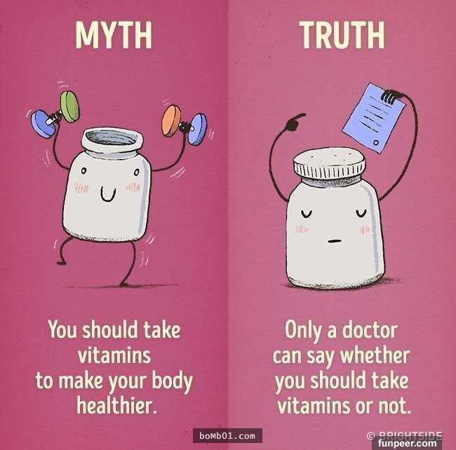 ▼2. 迷思:吃維他命可以讓你的身體更健康。真相:要不要吃維他命必須遵循醫囑。
