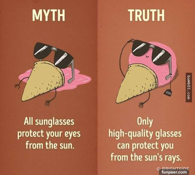 ▼12. 迷思:所有的太陽鏡都能保護眼睛。真相:只有品質好的太陽鏡才能讓你免受太陽輻射的傷害。