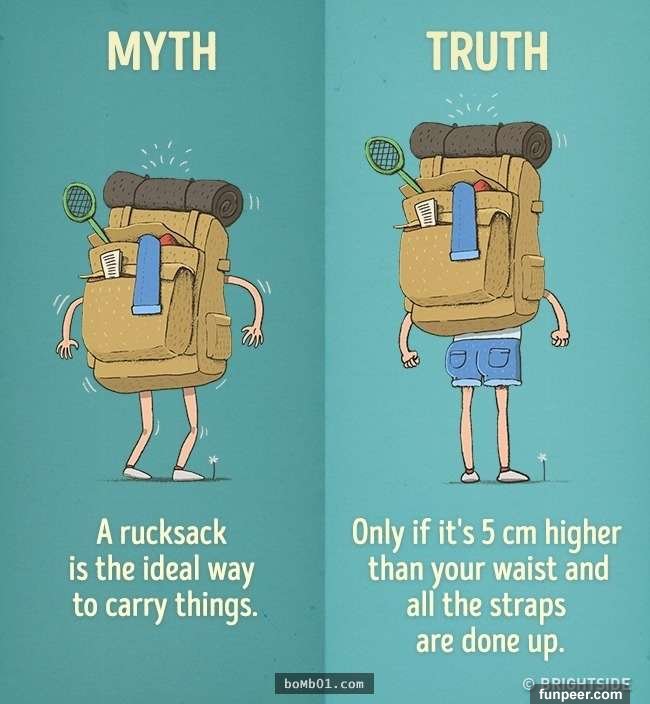 ▼11. 迷思:帆布包是攜帶東西的最棒方法。真相:只有包包在腰部以上5公分的時候是這樣。