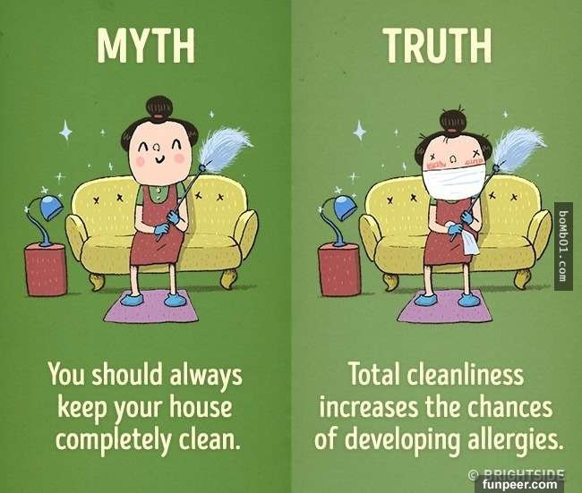 ▼7. 迷思:你要睡時保持房間乾淨整潔。真相:過度清潔可能導致過敏。