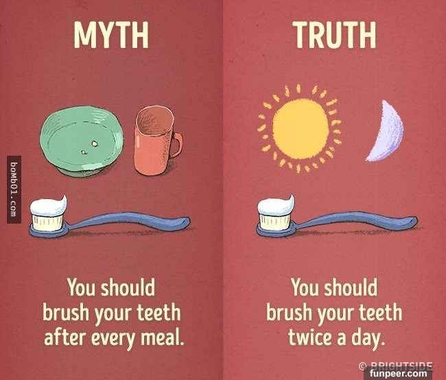 ▼5. 迷思:每頓飯後都要刷牙。真相:一天刷兩次牙就足夠了。