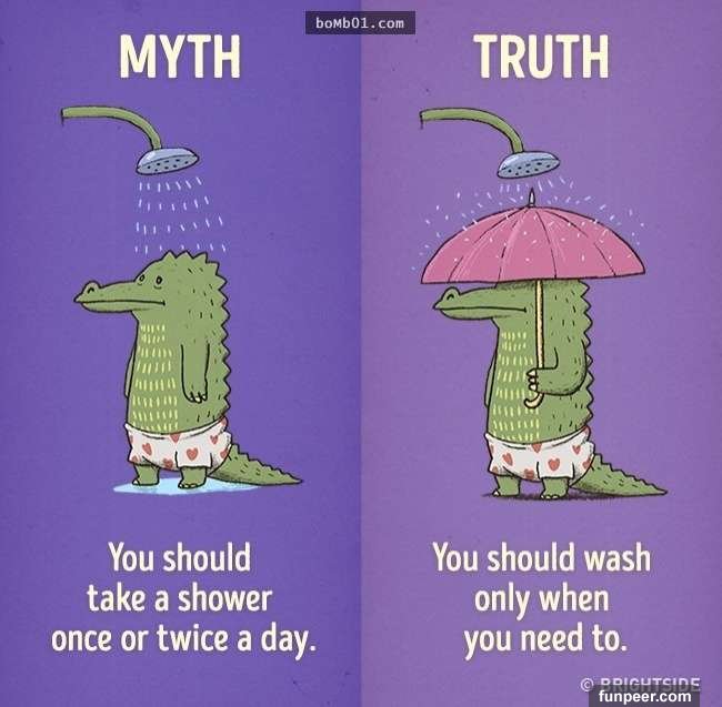 ▼3. 迷思:每天都要洗一到兩次澡。真相:需要洗澡的時候再洗就可以了。
