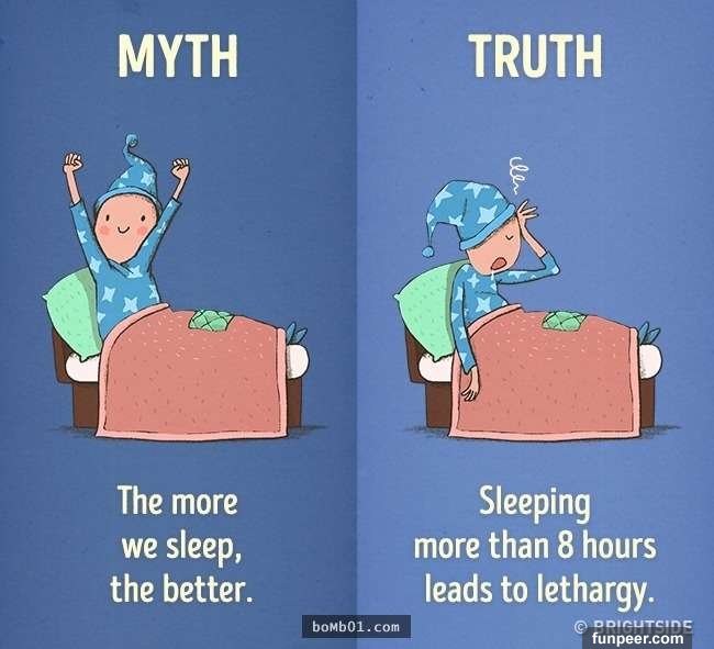 ▼9. 迷思:睡得越久越好。真相:睡眠時間超過8小時反而會讓人精神不佳。