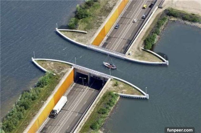 這座特別設計的橋梁是連接荷蘭主島和世界上最大人工島的主要幹道,一般而言不會將道路設計成這樣,但是荷蘭人打破傳統建築設計的方式,建造出讓世人驚豔的橋樑。想像一下,在經過隧道時,船隻在頭上行駛的感覺,想必是非常新奇的體驗。分享出去,讓大家看到荷蘭的創意設計吧!