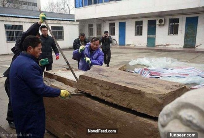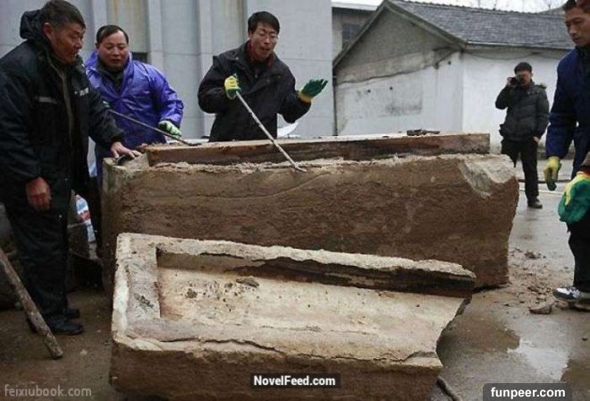 ▼等到把蓋子開啟,大家才明白這是一具棺材。