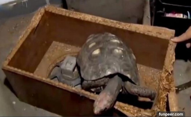 有專家認為,他之所以能活著,主要是靠吃盒子裡面的木屑,以及地板上活動的白蟻,而且也注意到了這種屬於紅腿象龜,也可以在很長一段時間裡面不吃東西存活!