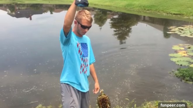 有趣的是,有一次他居然釣起了一隻烏龜,還以為是條大魚