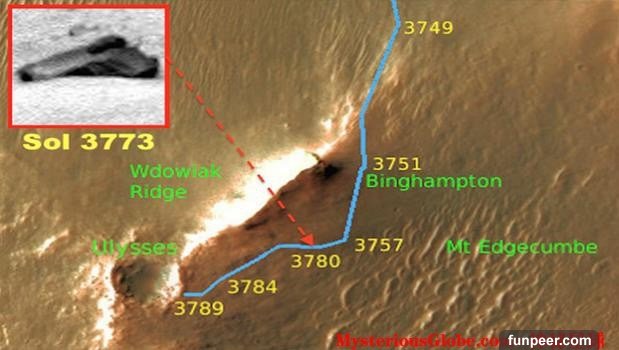 NASA定期會公布好奇號探測器在火星表面行走探測時拍到的各類照片,但是大多數都是平淡無奇的圖像。最近NASA罕見的曝光了一系列照片,UFO愛好者們居然從官方發布的這些照片中找出了令人震驚的東西!