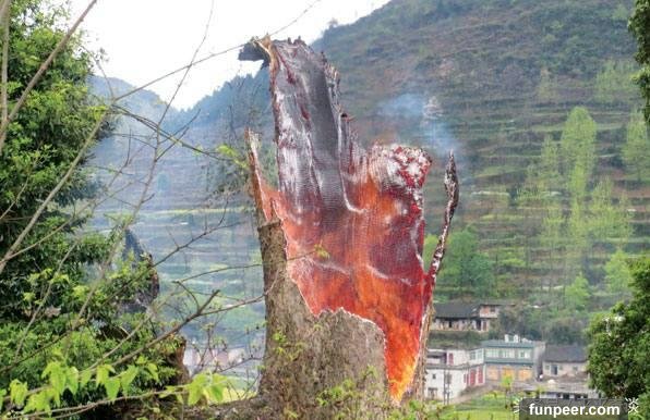 百年柳樹遭雷擊,樹內十多米大蛇被劈死,原來竟然是因為一婦人....!!!