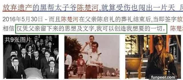 但是,讓陳楚河上頭條的是,在葬禮之後不久他簽字放棄遺產繼承權的新聞。他這是要表示,不靠父親,要靠自己的努力闖出一片天。