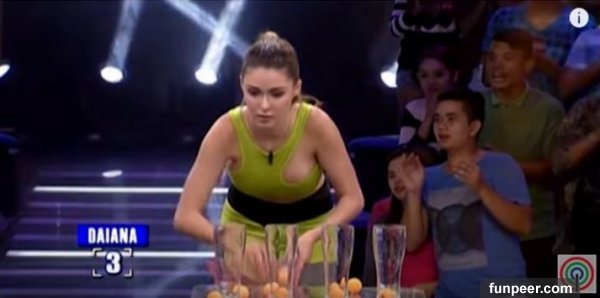 女模挑戰小彈球「背心離奇移位」,大家目光都被吸走了...