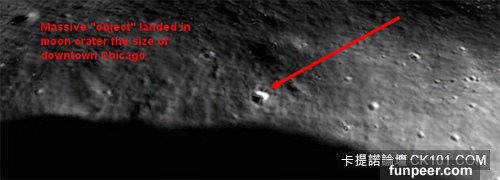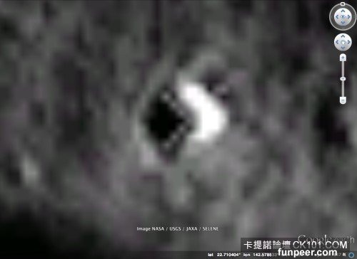 月球勘測軌道飛行器(LRO)給拍到,拍到的圖像是由google地球搜尋月球時所公佈出來登上月球的神祕飛船照片,請看下方的圖,它清楚地顯示一個人造的巨大物體在月球表面上。