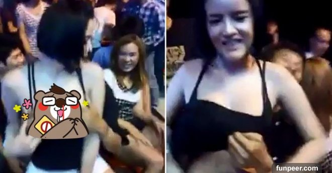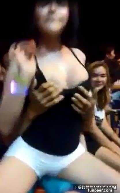 一名身材超優的短髮妹,坐在一男子的腿上後就開始猛搖