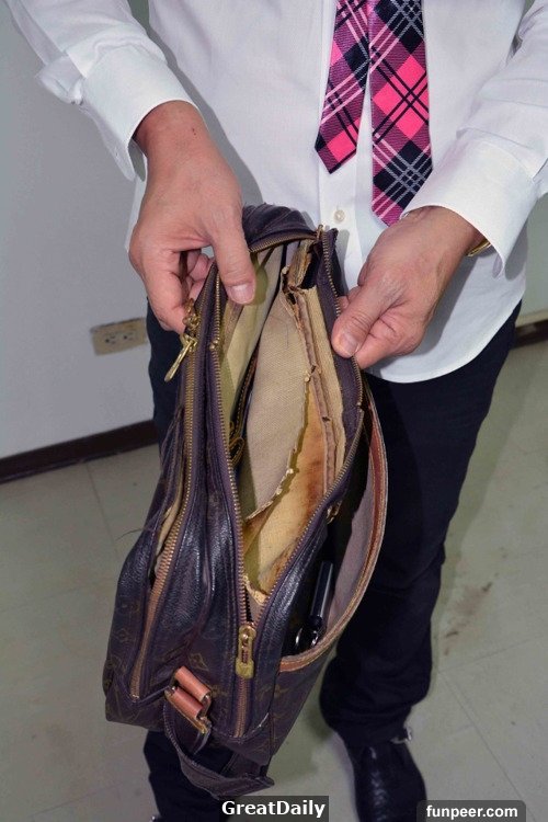 包包邊緣都破了,還走型,但徐乃麟愛不釋手。圖/華視提供