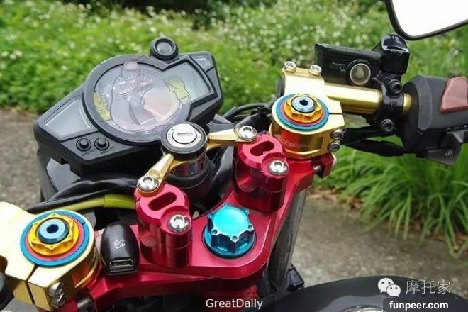 可調拉杆說到這塏茵開始一一介紹她的改裝品給我們看,上三角台、高流量空濾、RK 黃金鍊、LED 大燈、大牌上移、KOSO 前後方向燈以及尾燈。