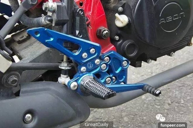 腳踏後移她分享著自己對於改裝的看法,就是要跟別人不一樣,尤其是車子的外觀,一般的常規改裝已經無法滿足塏茵,車上五顏六色的外觀,都是出自於她的構想與設計。