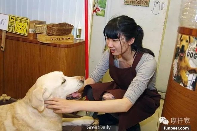 塏茵不忙的時候也會跟咖啡店裡的狗狗玩一會