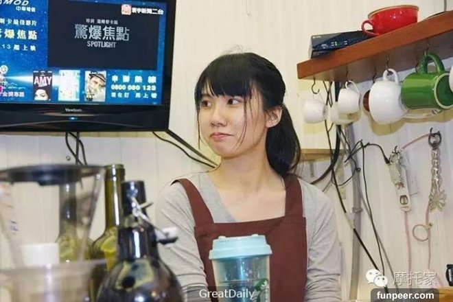 每當曾塏茵騎著MY150 上班時,走進咖啡店總是會吸引不少人的目光,其實第一次遇到塏茵時,說實在自己的視線也難以從她身上移開。