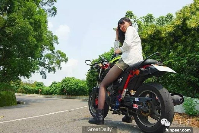 真不愧是個有個性的女孩,塏茵對掛檔車有滿滿的熱情,就算不能騎也要找個一樣有裸把的踏板來過過乾癮,真是讓人佩服!不過她也偷偷說:「當時的她根本不會騎掛擋車!」