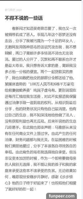為此,馬雅舒發長微博澄清此事:「與吳奇隆再無任何瓜葛,也沒拿任何豪宅和贍養費,並將通過法律維權」。她還關掉微博評論,刪光了所有微博,隻留下維權的這一條微博,至此這件事才了結。