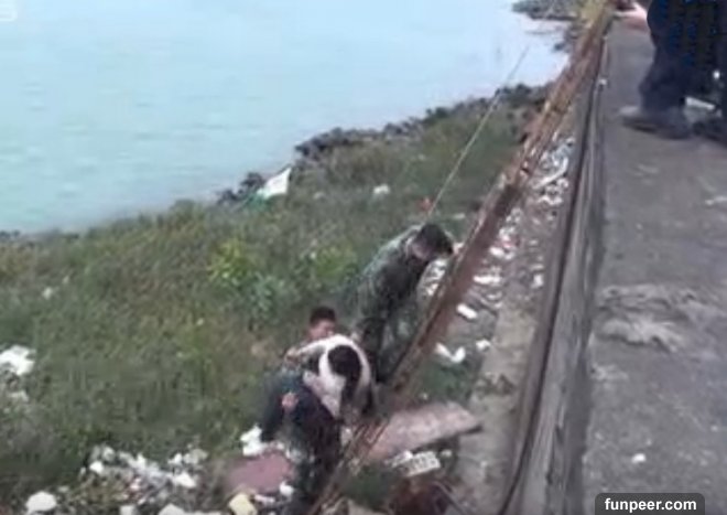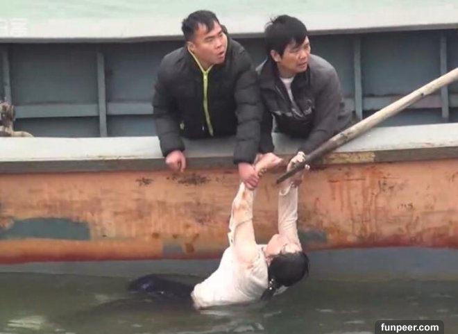 他們努力將女子拉到岸邊,成功將女子拉上岸。