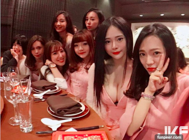 的美圖,圖片中的女主角身穿深V爆乳套裝,且其它同事也穿的非常性感,引發網友熱議。