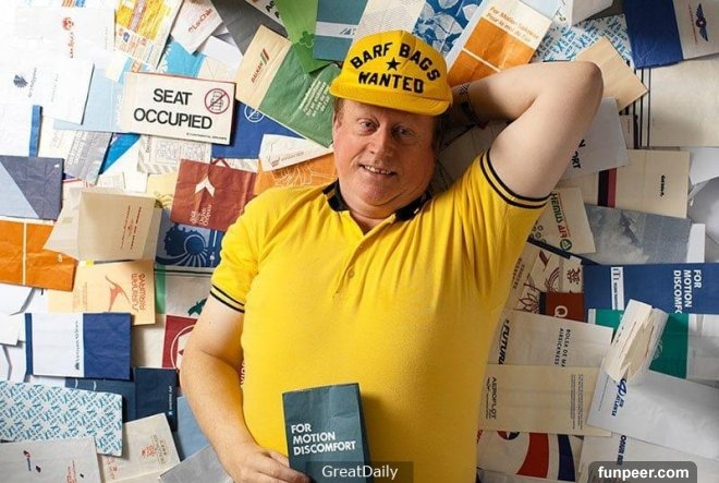 4.Niek Vermeulen收集了1191家不同航空公司的6290個嘔吐袋. 真希望那些都是沒用過的...
