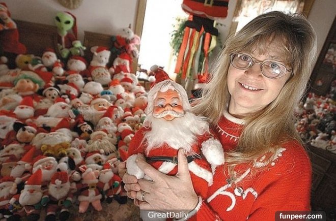 10.沒人比Sharon Badzhli更喜歡圣誕節! 她的家里收藏了6000個圣誕老人的玩偶.