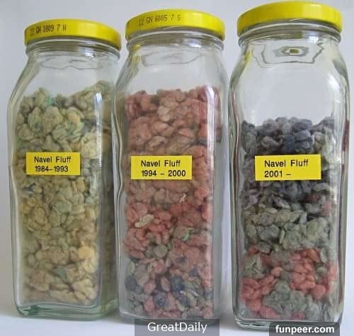1.格雷厄姆巴克很好奇他能從肚臍中拿到多少的纖毛,所以從1984年開始就一直收集到現在.