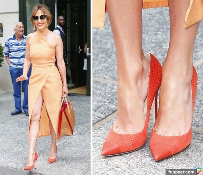 以前,許多女星只有在穿長禮服的時候才會穿大一碼的鞋子,因為長裙子剛好可以遮住鞋子,但是現在越來越的女星即使在穿短禮服的時候也會大方的穿大一碼的鞋子。