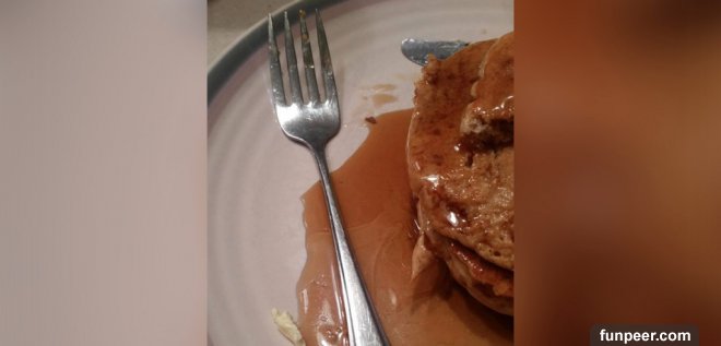 1. 整根掉進盤子裡的叉子: