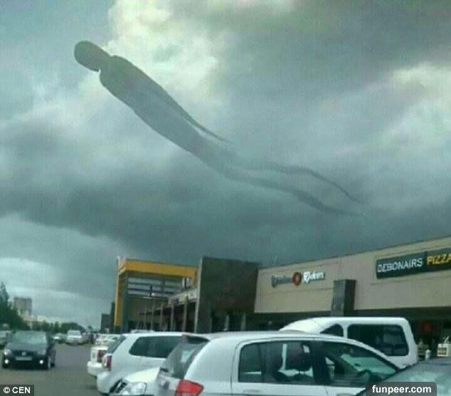 近日又有人拍到了一張無法理解的靈異照片,據說這是在非洲贊比亞的一個賣場門口拍到的,天空上這個巨大人形物體,體型真是龐大到讓人驚恐!推估約有100公尺長。![]()