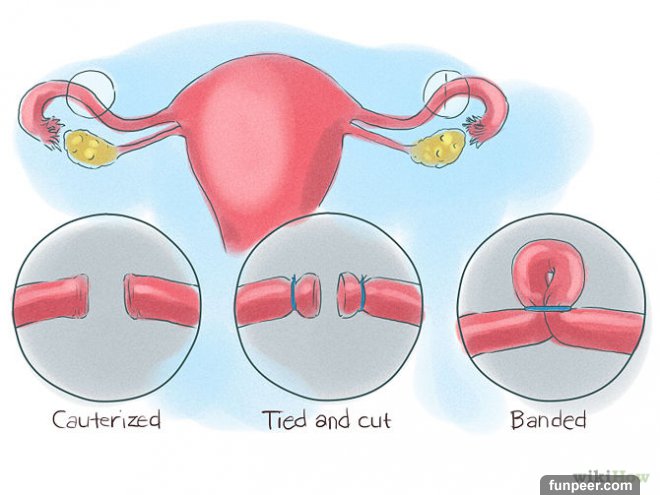女性絕育。通過結紮手術來關閉輸卵管,預防懷孕的可能。這種避孕方法非常有效,但是不要輕易嘗試,因為想要逆轉則非常困難,或者幾乎不可能。