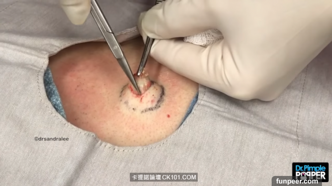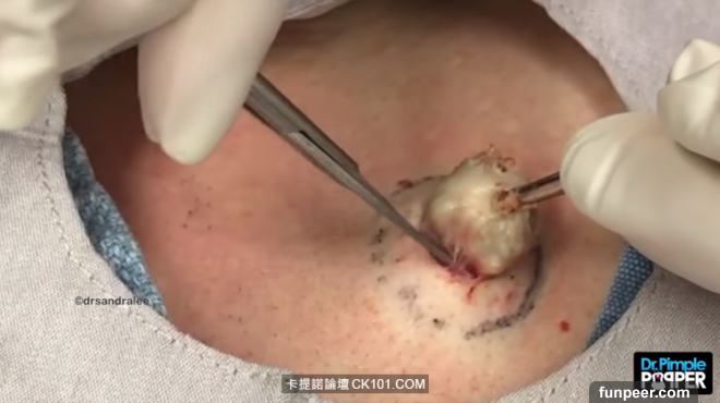 洞開得差不多大之後,Dr. Sandra Lee夾起一塊東西…
