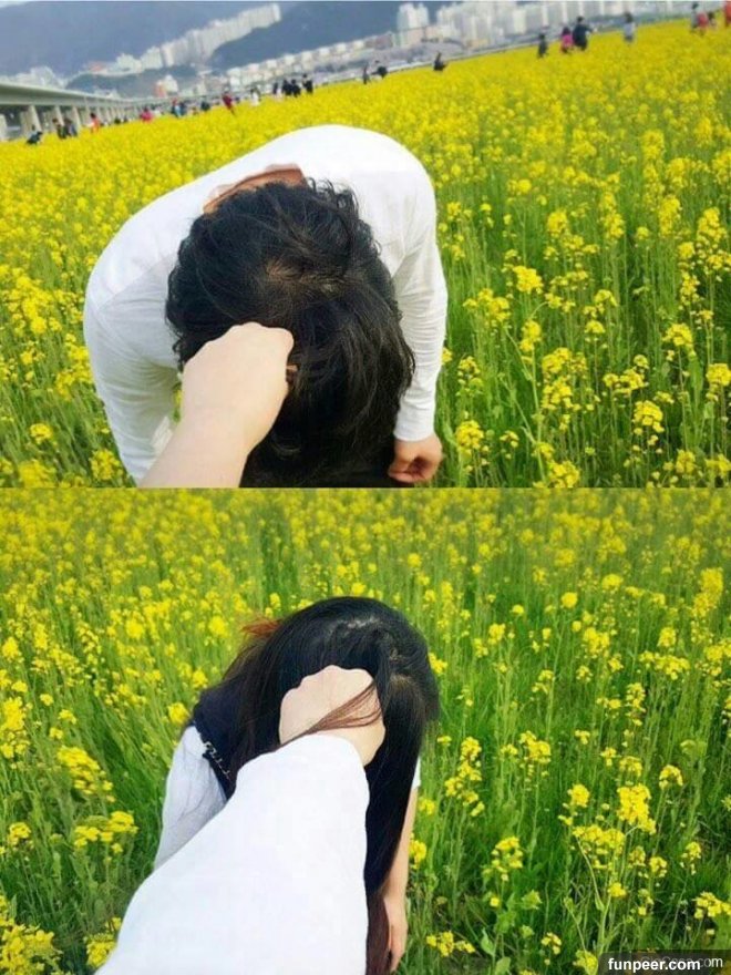 或是這種讓人一秒笑噴,卻依然愛意滿滿的惡搞扯髮照,也是韓國情侶們喜歡的放閃方式!