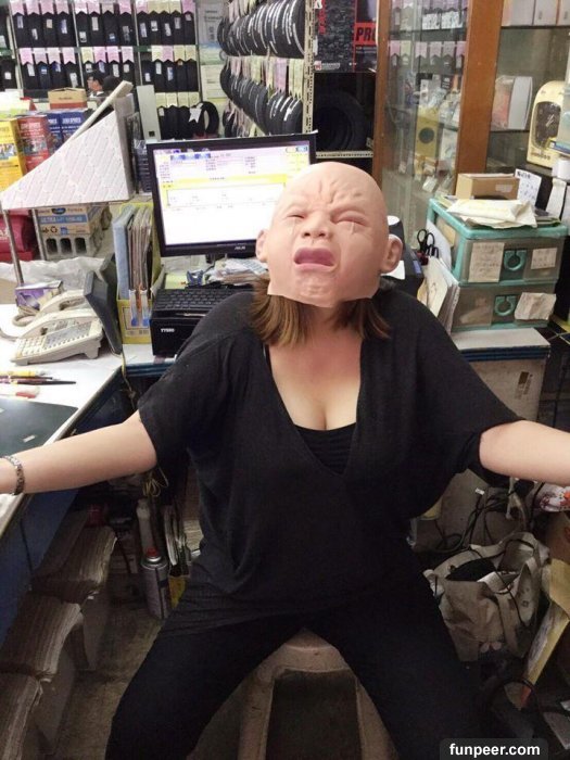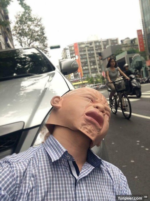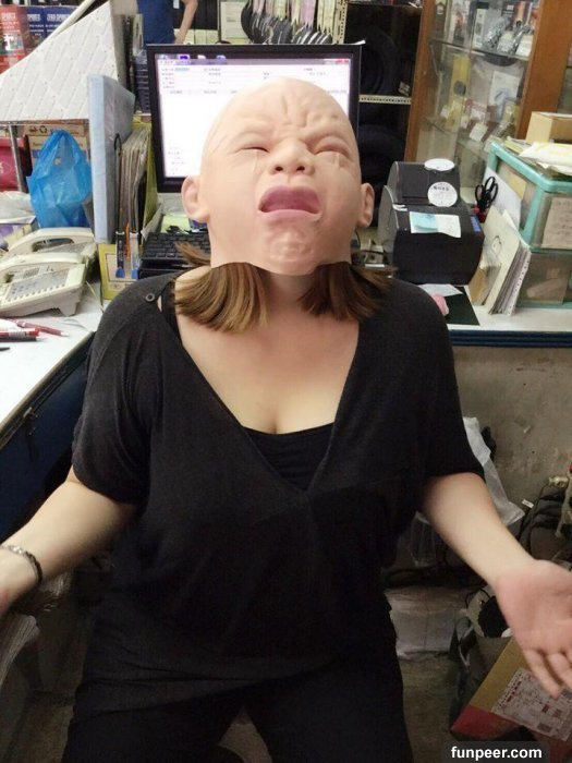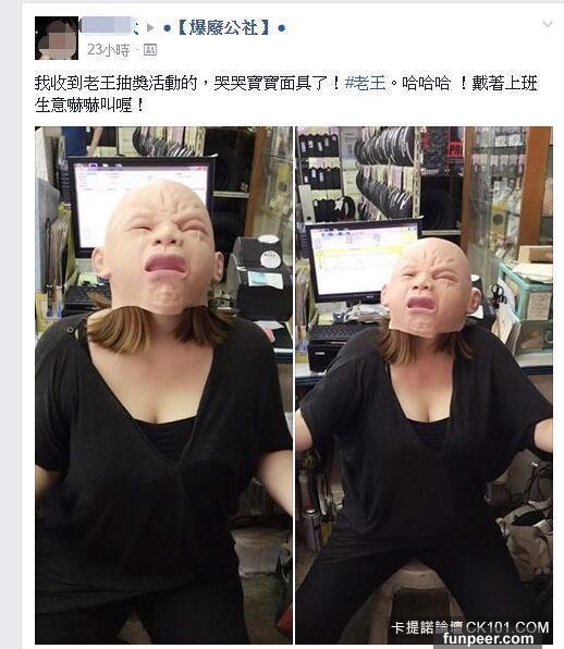 她參加「老王」抽獎抽到面具...戴上後po網分享 結果大家全都沒在看面具:深溝太搶戲