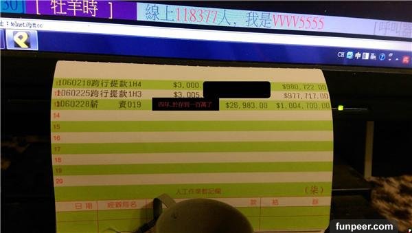 半夜看著郵局的簿子一陣心酸回想起大四下延畢 然後無法辦緩徵被迫先去當兵當完兵又回學校 丟臉的和以前的學弟當同學 一起上課那半個學期 又要搖飲料 又要上課 真的是煎熬為了存錢這四年來 吃的是最簡單 用的是最破穿的是最舊喝的是最便宜的林鳳營(還被鄉民罵 被板煮水捅) 玩...幾乎都沒出去玩過沒有買超過五千元的東西過(我看簿子 沒有單次領超過三千元)每天的消遣就是打著不用錢的批踢踢和英雄聯盟(電腦退伍後組的 也花不到八千 打英雄聯盟都很頓)雖然一百萬滿少的但其實內心還是滿開心的畢竟窮人容易滿足.. 如果大家不想跟我一樣為了區區一百萬 過的這麼可憐趕快加油吧 QQ