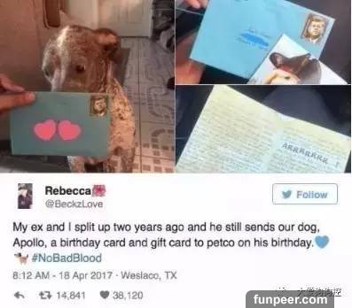 雖然不住在一起了,Frankie還是會經常過來。倒不是來和Rebecca敘舊,而是看望家裡的Apollo。 在他心裡,狗狗Apollo就像自己的孩子一樣,一段時間不見,就會特別想念。 而且從他們分開至今,兩年過去了,每年Apollo過生日,他都會給小傢伙寄來慶生卡片。