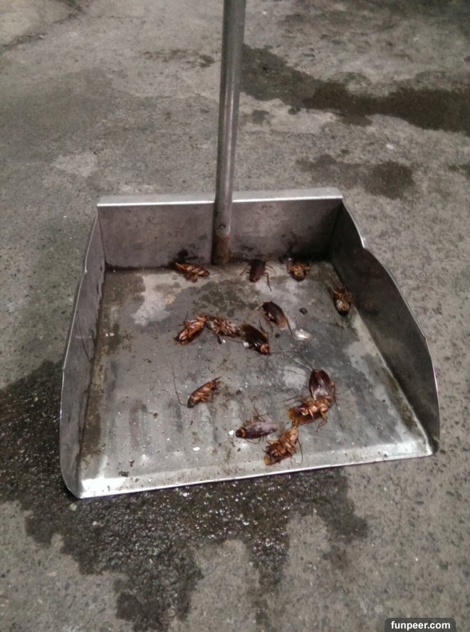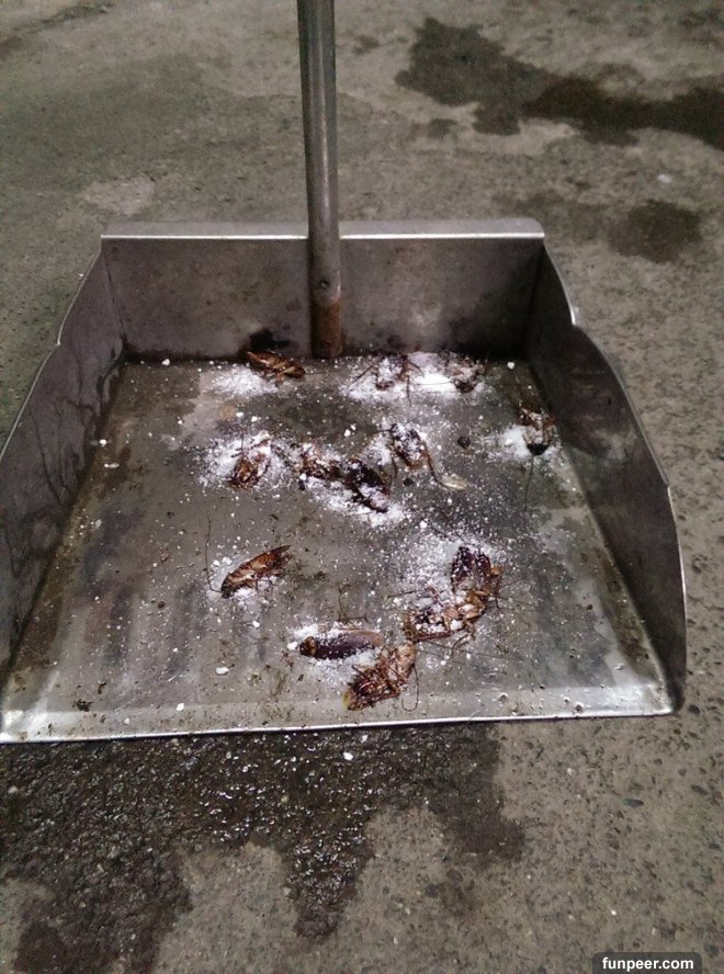 但聽說不要打爆蟑螂,因為它們體內很多寄生蟲或細菌會跑出來,所以我多半先打暈它(肚子沒爆開),接著淋熱水!順便幫它殺菌